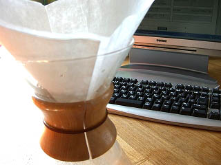 元々はそのフォルムから想像するとおり、とある実験室から生まれたもの。ものぐさな研究員が手じかにある三角フラスコと濾斗でコーヒーを入れていたのがその起源。